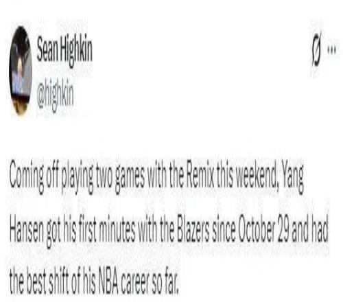 北京時(shí)間11月19日,NBA常規(guī)賽,開拓者主場(chǎng)110-127不敵太陽(yáng)。中國(guó)球員楊瀚森被召回,時(shí)隔20天出現(xiàn)在NBA賽場(chǎng),他首次獲得雙位數(shù)登場(chǎng)時(shí)間,出場(chǎng)13分8秒,7中4貢獻(xiàn)9分5籃板3助攻1蓋帽,得分、籃板和助攻均為生涯新高,有多次高光得分時(shí)刻,讓大家看到他更加從容自信的一面。